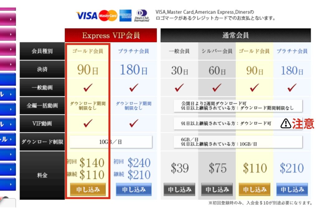 料金プランを選びます。迷ったらExpress VIP会員「3ヶ月プラン」がコスパ最強でおすすめです。